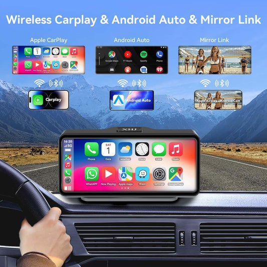 Portable Carplay Screen Wireless with Car Stereo - Compatible with Apple CarPlay & Android Auto, 7'' HD,Dual Speakers,Voice Control,GPS Navigation,Bluetooth Audio,Touchscreen,Mirror Link,AUX/FM